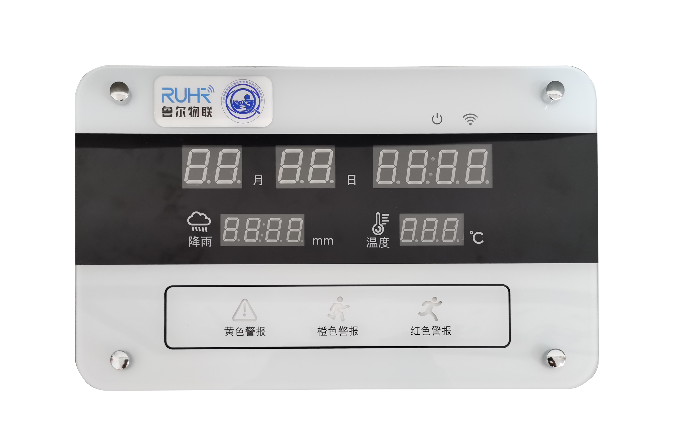 該簡易雨量站由室外雨量采集終端和入戶型報警器組成,簡易雨量站和室內報警器通過無線通信連接,當采集器監(jiān)測到超閾值雨量,自動觸發(fā)室內報警器啟動語音(聲、光)報警。具有黃色、橙色、紅色預警三個預警級別。產(chǎn)品采用與家庭日常用品相結合的親民形式,具有公歷、時間、室內溫度等居民日常常用信息的顯示功能,可提高居民對設備保管維護的重視程度,便于居民及時掌握預警信息。